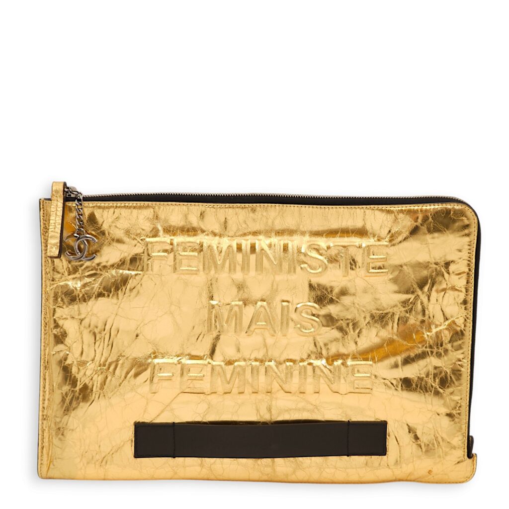 Feministe Mais Feminine Matallic Gold Clutch in Calfskin, Palladium hardware