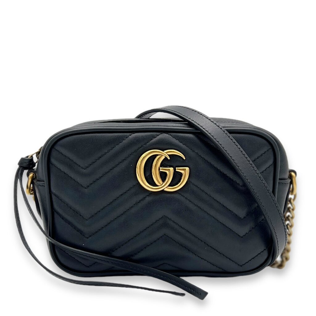 GG Marmont Mini Black Crossbody Bag in Calfskin, Gold hardware