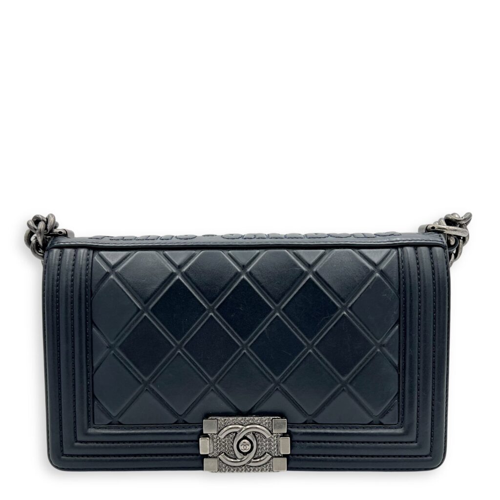 Boy Medium Blue Shoulder Bag in Lambskin, Ruthenium hardware