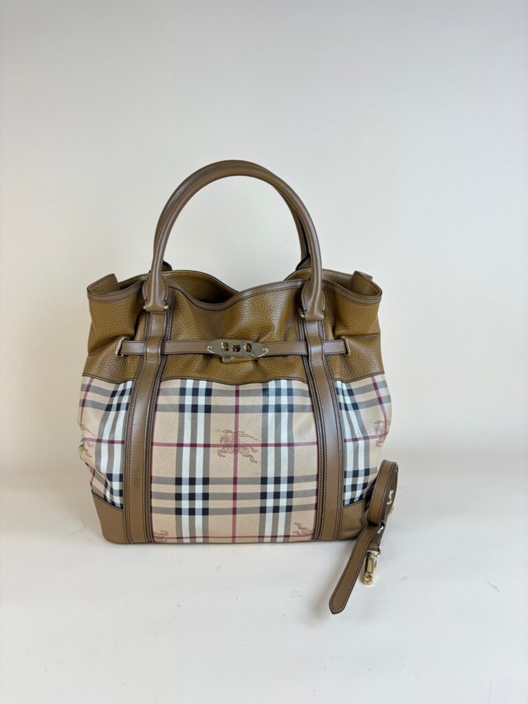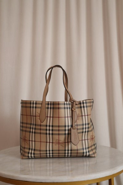 Burberry Beige Haymarket Reverse Tote Medium Shoulder Bag