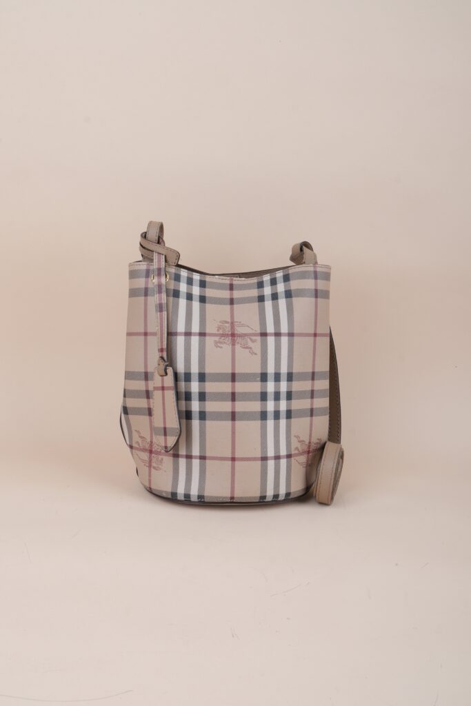Burberry Beige Lorne Small Nova Check Bucket Bag