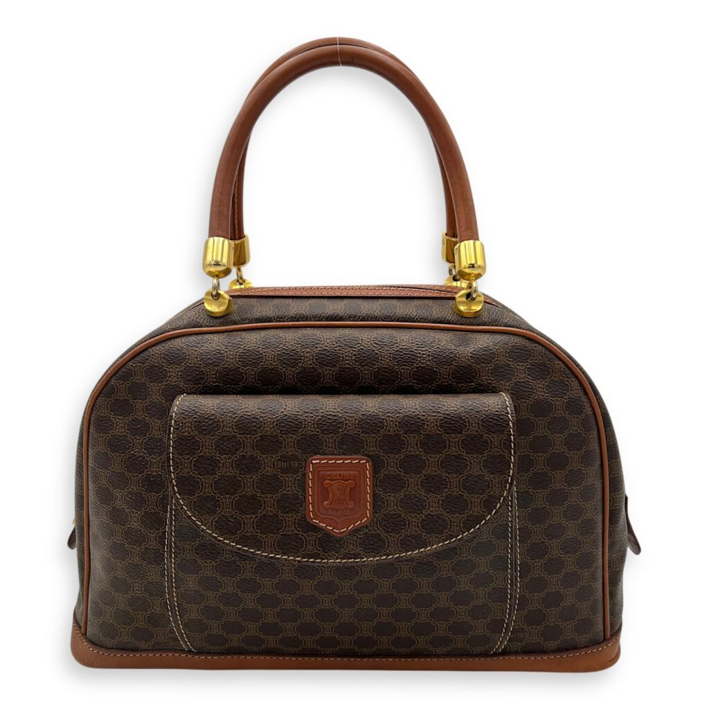 Macadam Top Handle Bag Brown in Coated Canvas, Gold hardware