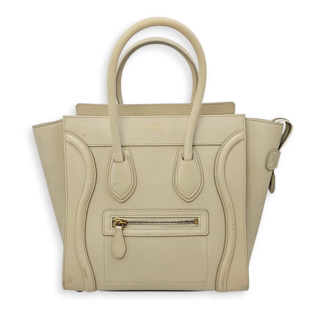 Micro Beige Luggage Bag in Calfskin, Gold hardware