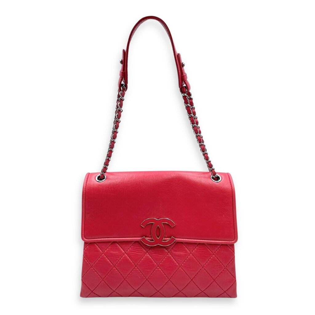 CC Quilt Red Clutch in Calfskin, Ruthenium hardware