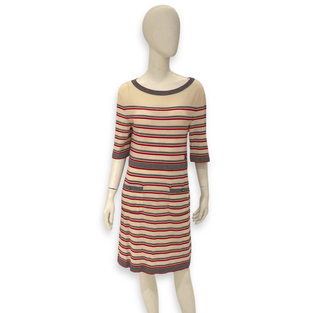 CC Striped Dress 38 White/Red/Black Ready-To-Wear in Wool