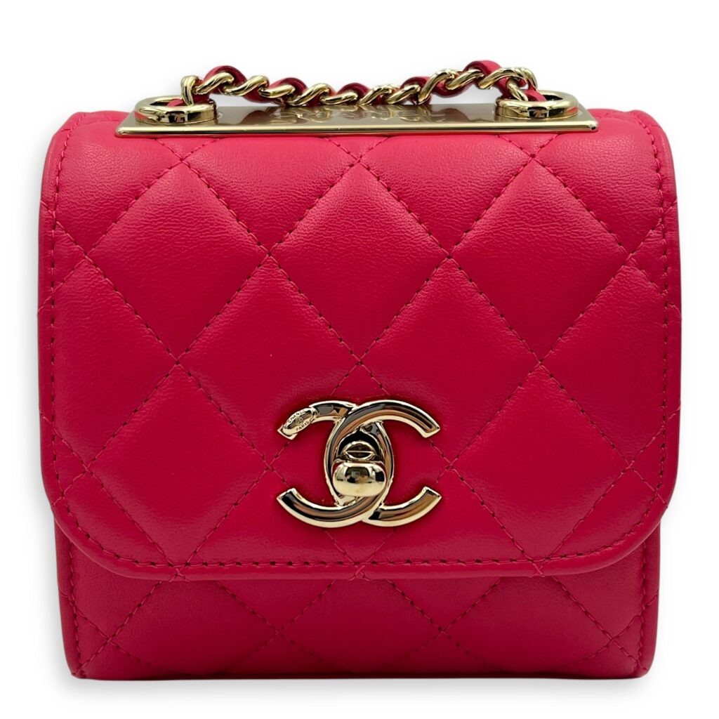 CC Wallet On Chain Pink in Lambskin, Gold hardware