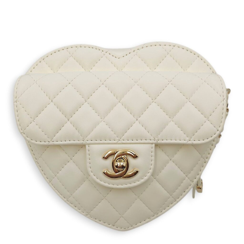 Chain Clutch Mini Beige Crossbody Bag in Lambskin, Gold hardware