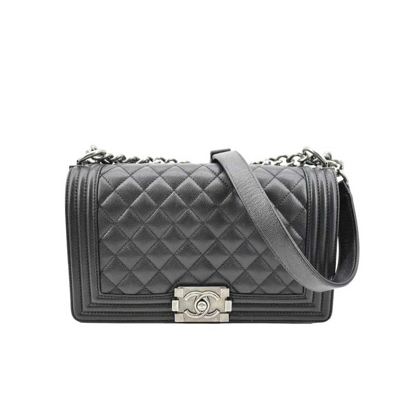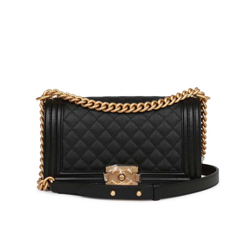 Chanel Medium Boy Bag Black Caviar Antique Gold Hardware