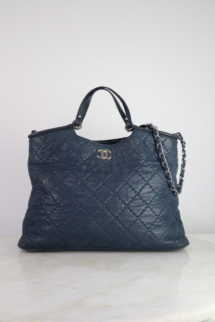 Chanel Navy Iridescent CC Sea Hit Large Handbag W/ Strap