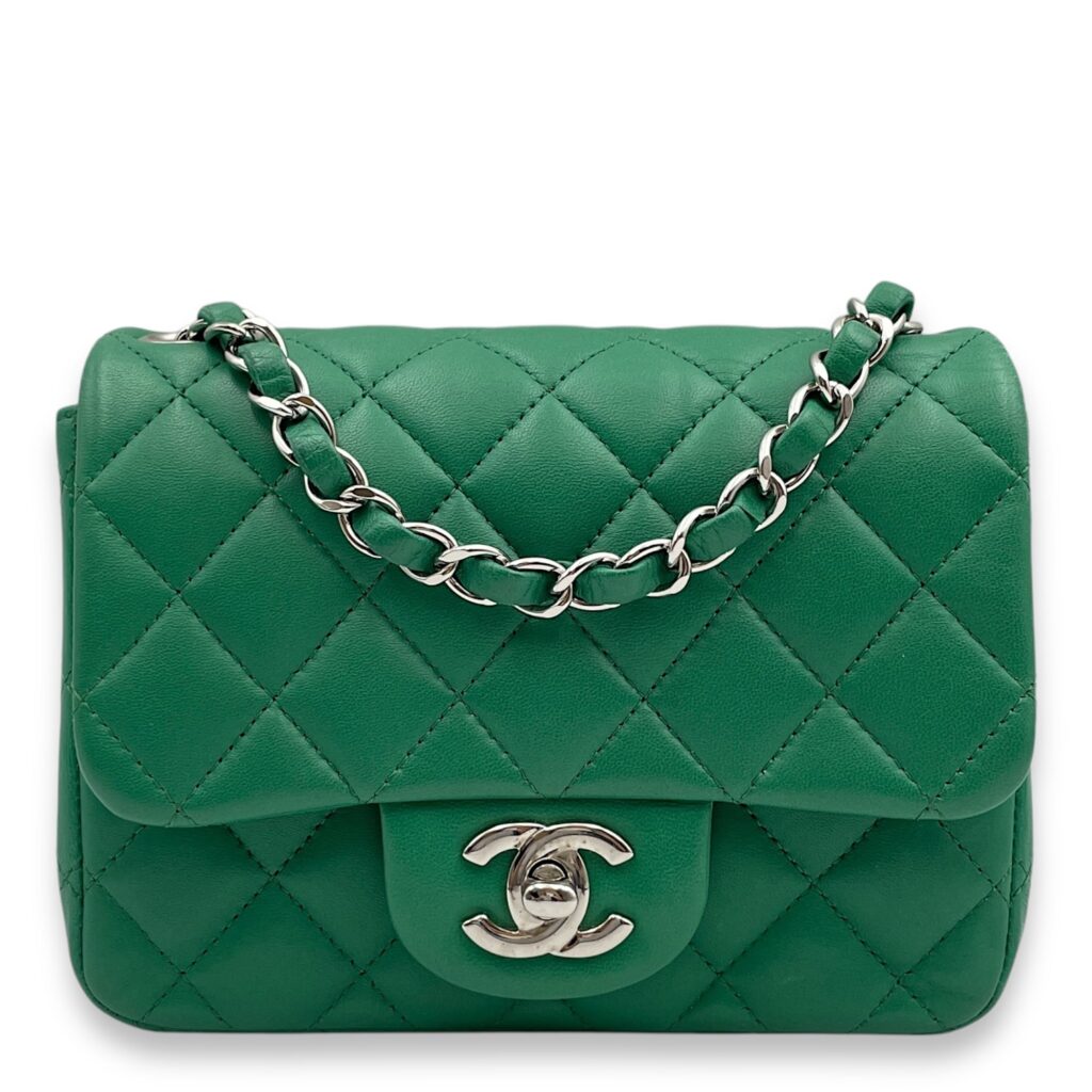 Classic Square Mini Green Crossbody Bag in Lambskin, Silver hardware
