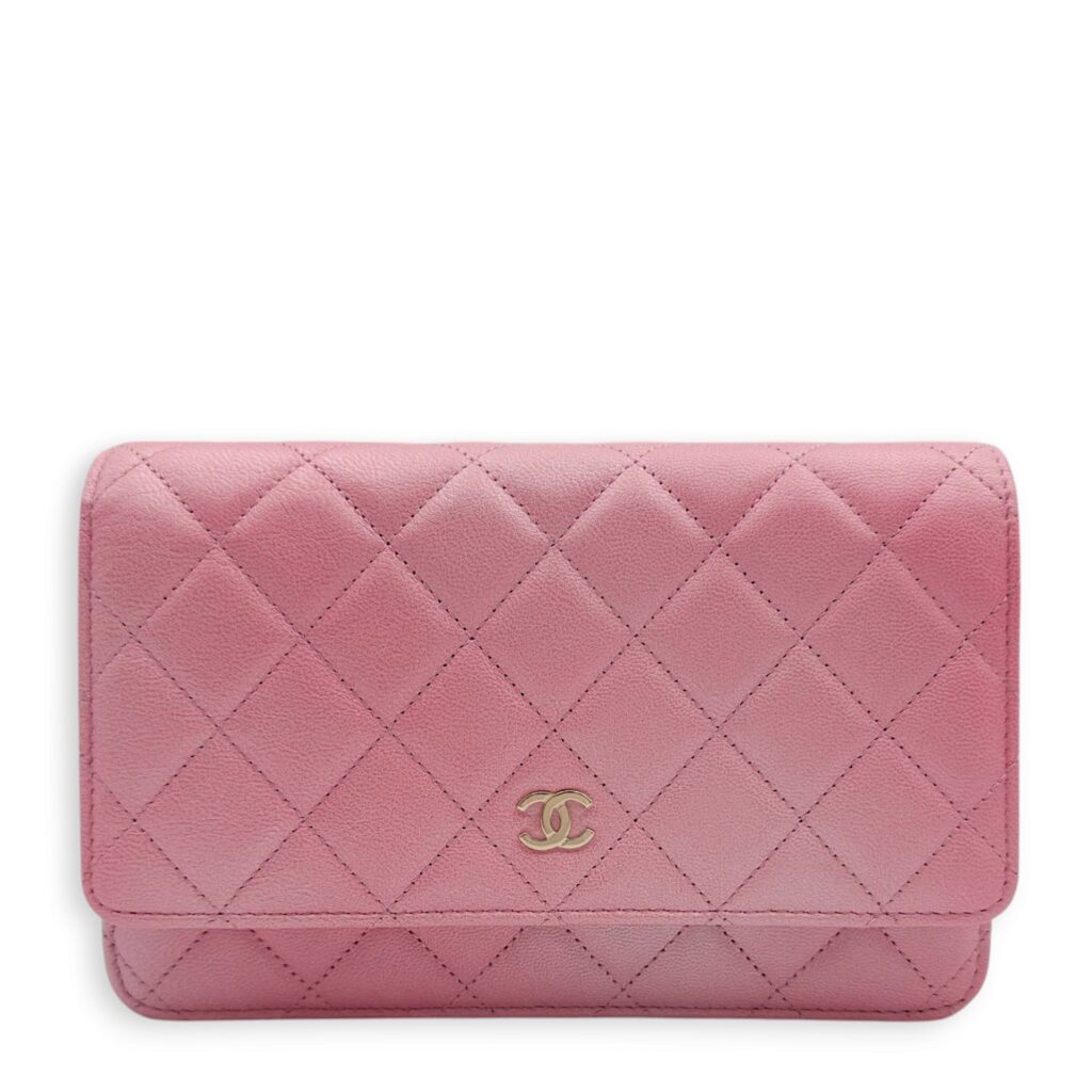 Classic Pink Wallet On Chain in Calfskin, Gold hardware
