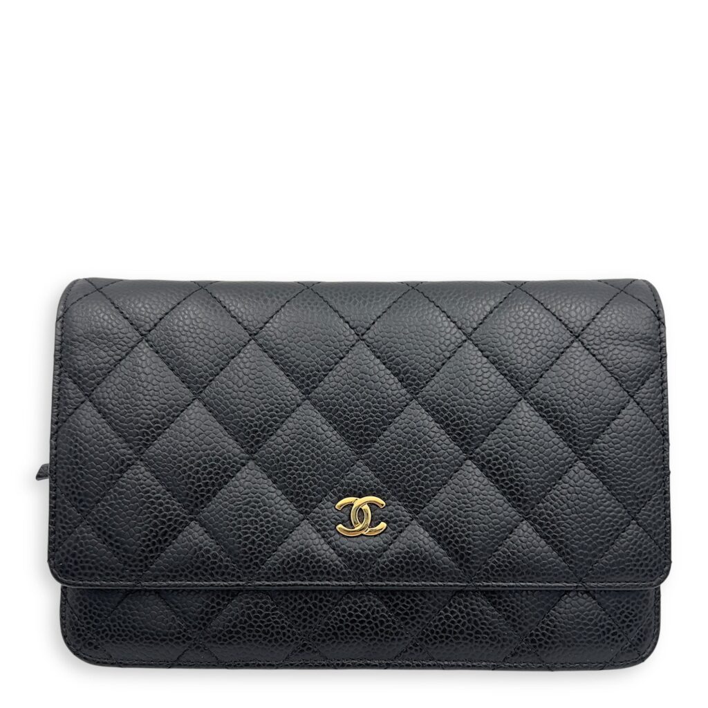 Classic Wallet On Chain Black in Caviar Leather, Gold hardware