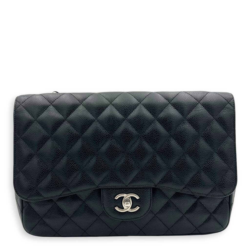 Classic Shoulder Bag Jumbo Black in Caviar Leather, Silver hardware