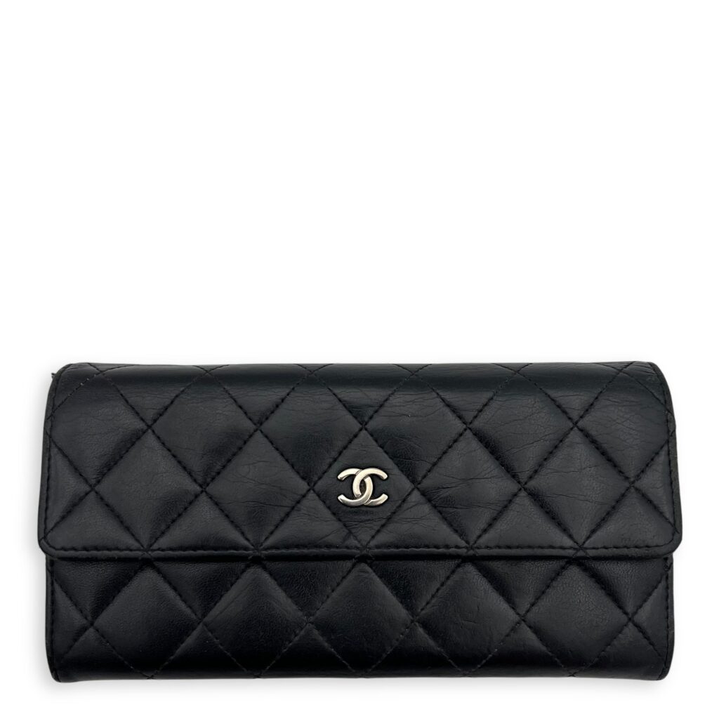 Classic Wallet Long Black in Lambskin, Silver hardware