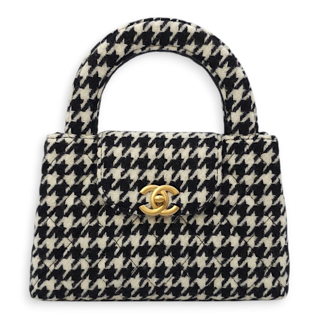 Houndstooth Kelly (19cm) Mini Multi-colour Crossbody Bag in Tweed, Gold hardware