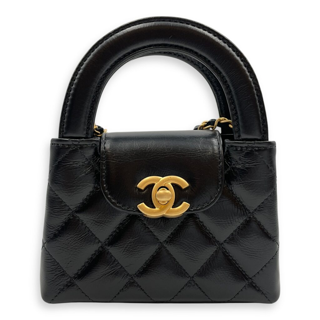 Kelly Micro Black Crossbody Bag in Lambskin, Gold hardware
