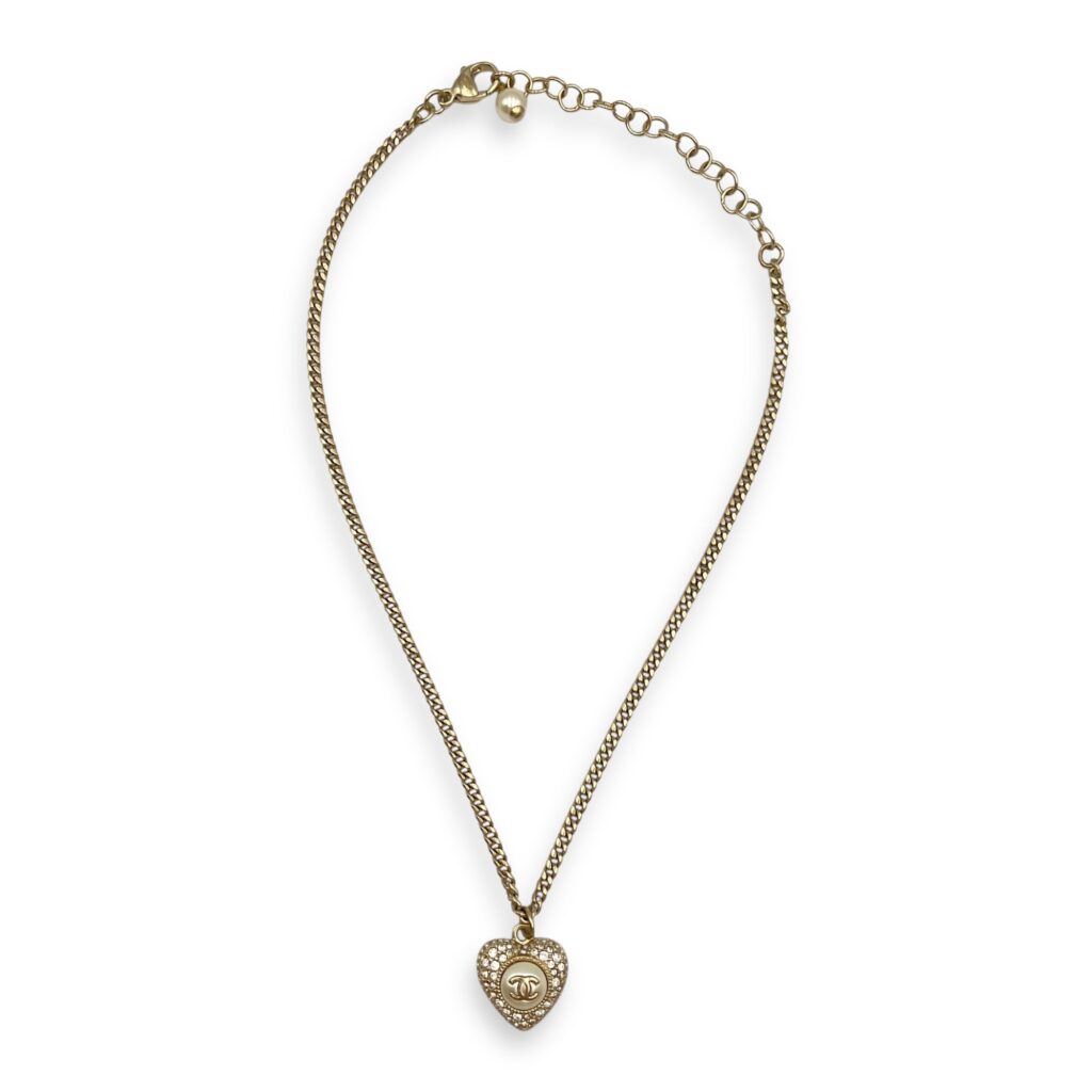 Heart Crystal CC Logo Brushed Gold Hardware Choker
