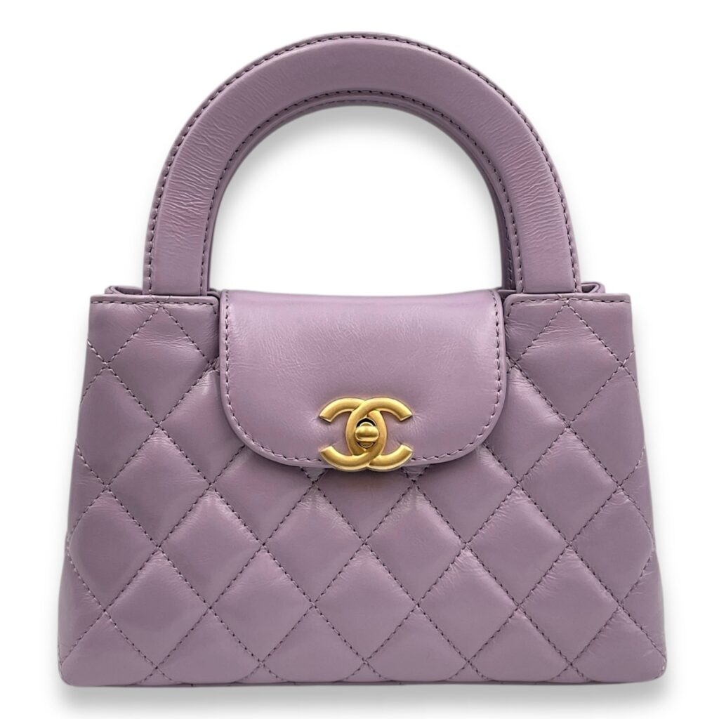 Kelly Mini Lilac Top Handle Bag in Lambskin, Brushed Gold hardware