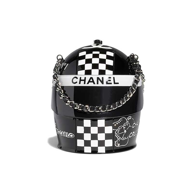 Helmet Minaudiere Black & White Resin, Strass & Silver-Tone Metal – CB024