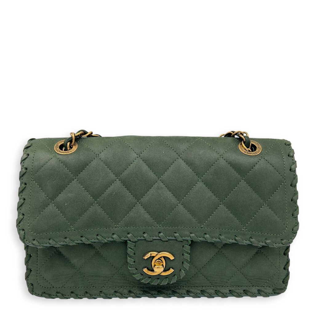 Happy Stitch Green Shoulder Bag in Calfskin, Gold hardware