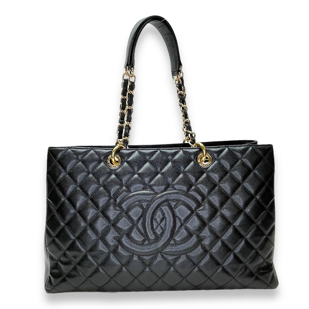 GST XL Black Shoulder Bag in Caviar Leather, Gold hardware