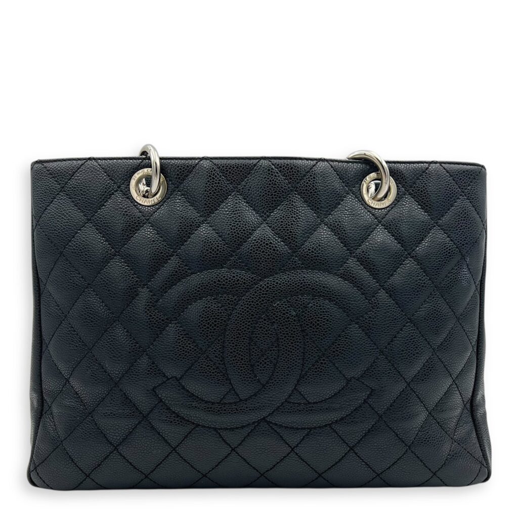 GST Tote Bag Black in Caviar Leather, Silver hardware