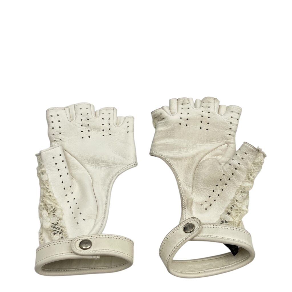 Leather and Lace 7.5 White Gloves in Lambskin, polyamide,viscose,elastane, Silver hardware