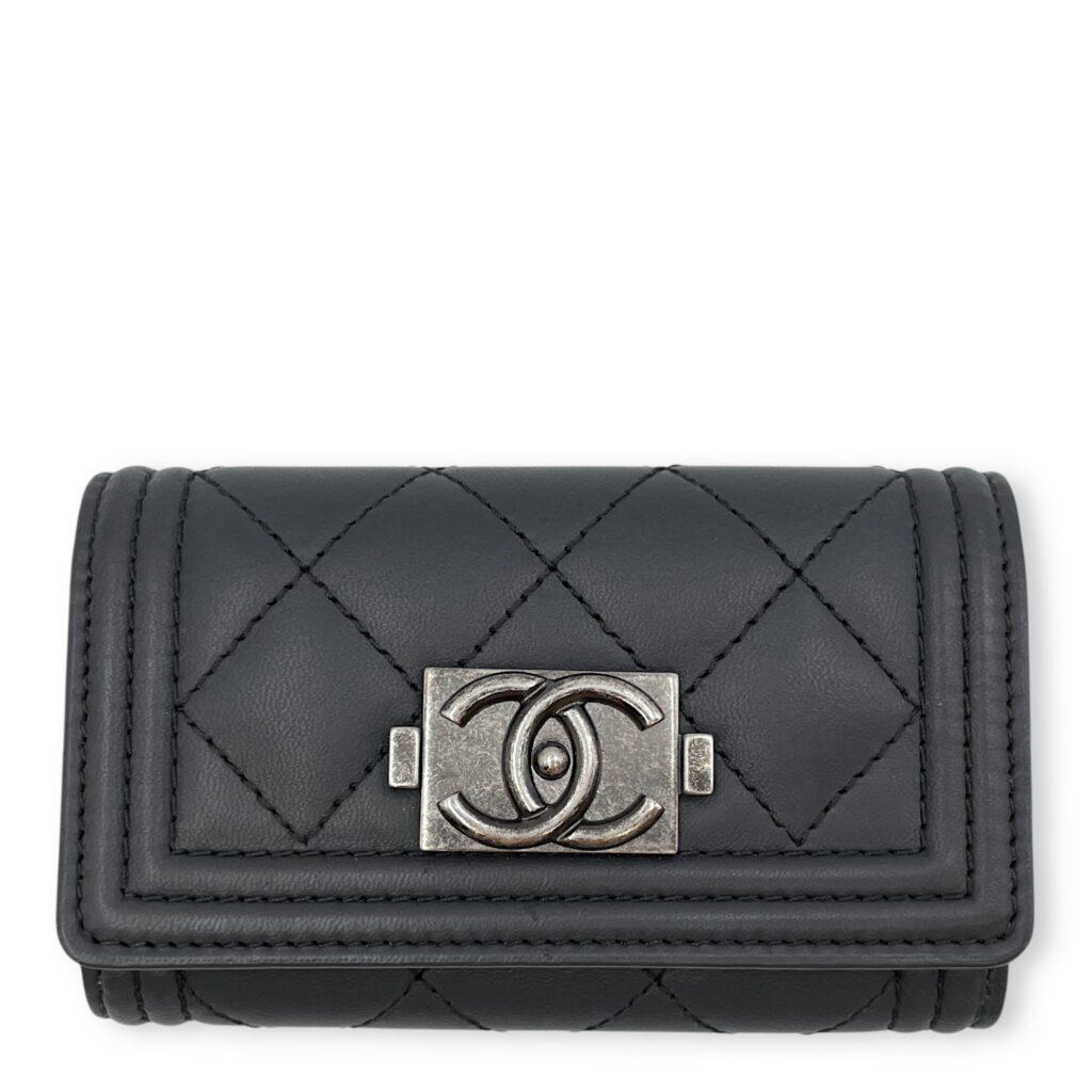 Le Boy Grey Key Pouch in Lambskin, Ruthenium hardware