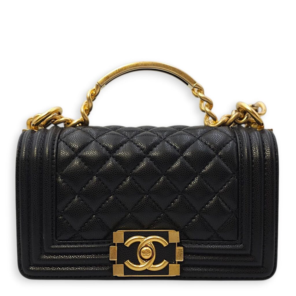Le Boy Small Black Shoulder Bag in Caviar Leather, Gold hardware