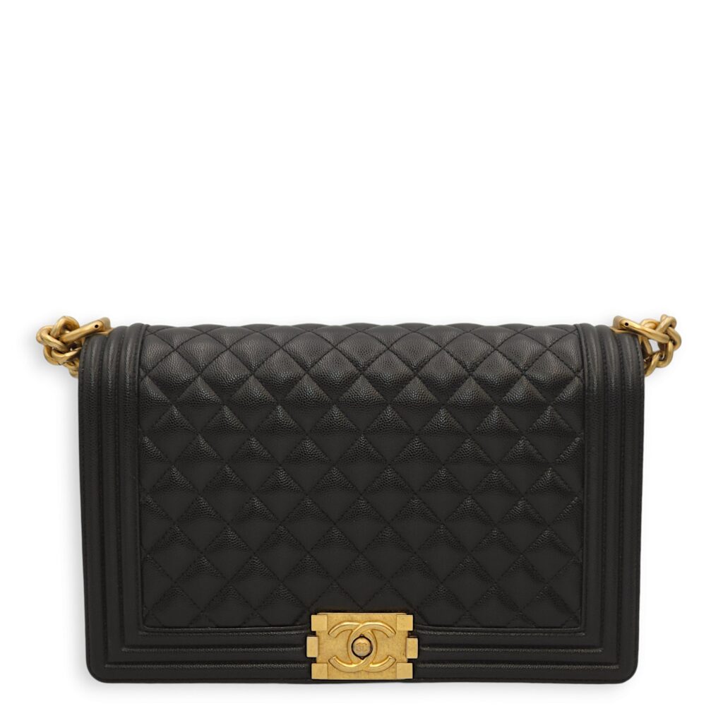 Le Boy Medium Black Shoulder Bag in Caviar Leather, Gold hardware
