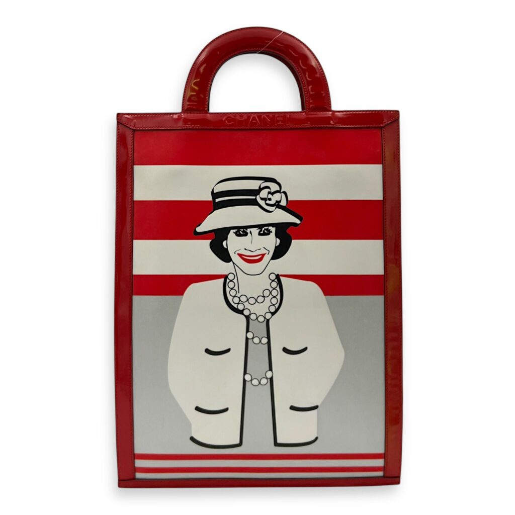 Mademoiselle Lady Coco Enamel Red Top Handle Bag in Patent Leather, Silver hardware