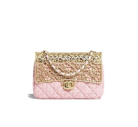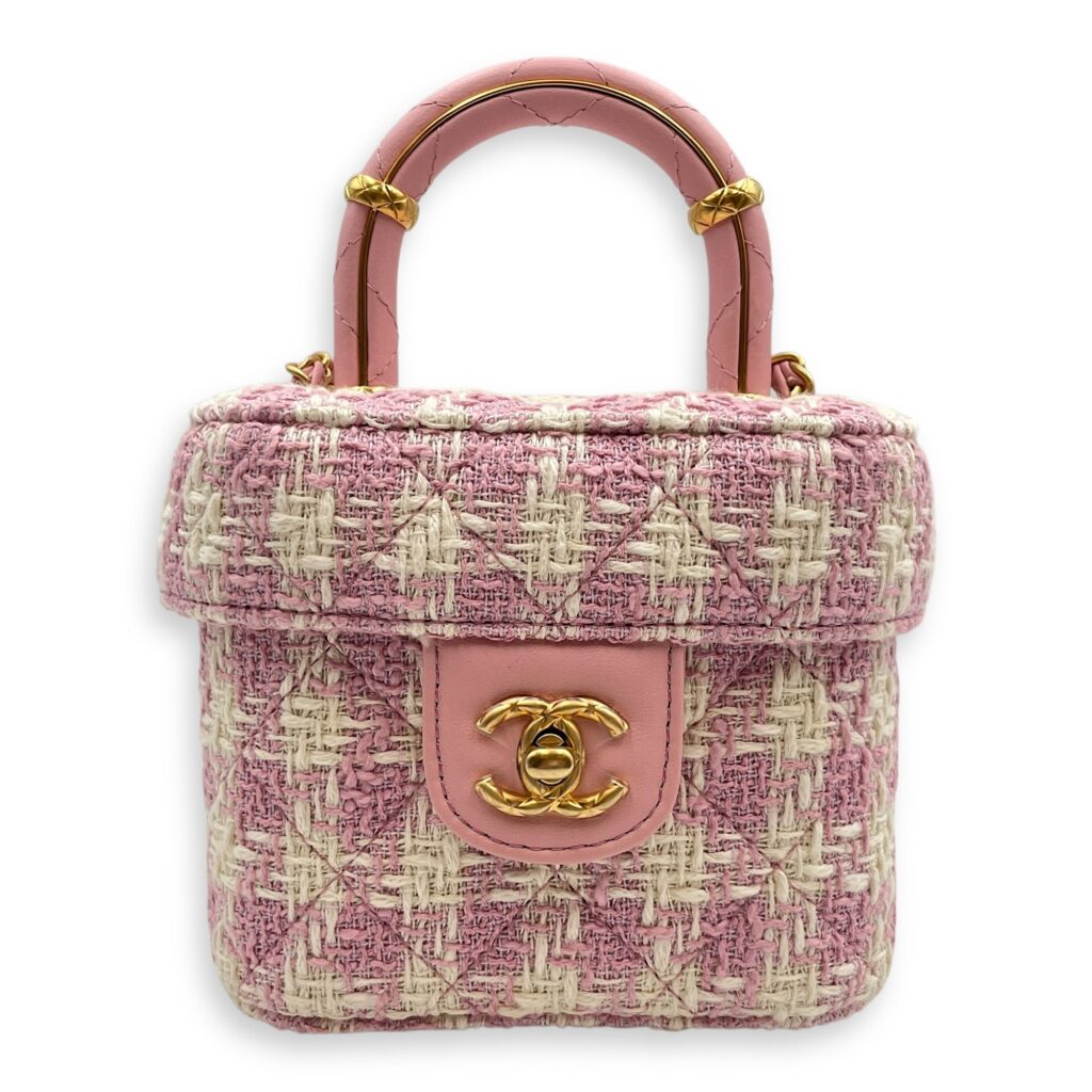 Matelasse Small Pink Vanity Case in Tweed, Gold hardware