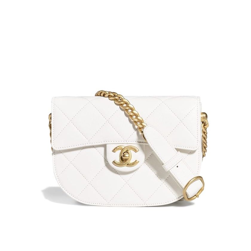 Messenger Bag Grained Calfskin & Gold-Tone Metal White – CB021