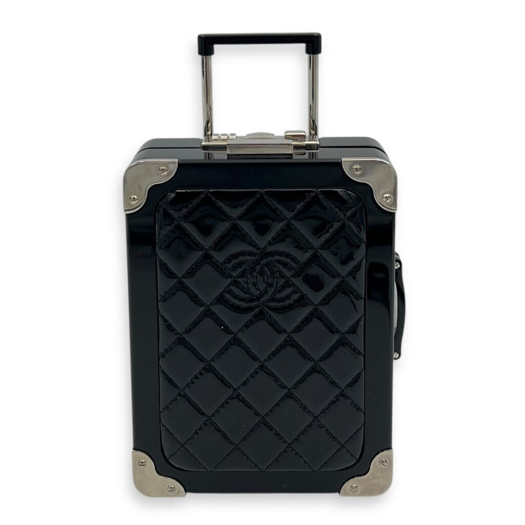 Minaudiere Trolley Black Clutch in, Silver hardware