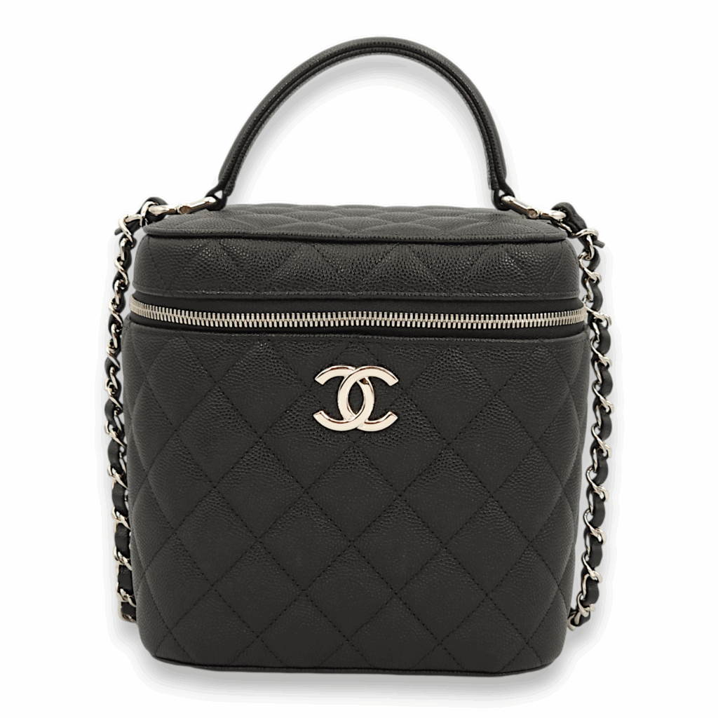 Quilted Black Vanity Bag in Caviar Leather, Palladium hardware
