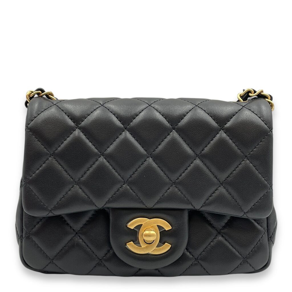 Pearl Crush Square Mini Black Crossbody Bag in Lambskin, Gold hardware