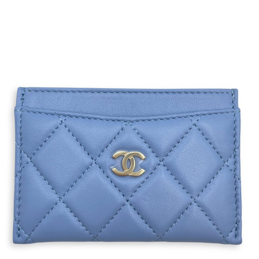 Quilted Blue Card holder in Lambskin, Gold hardware