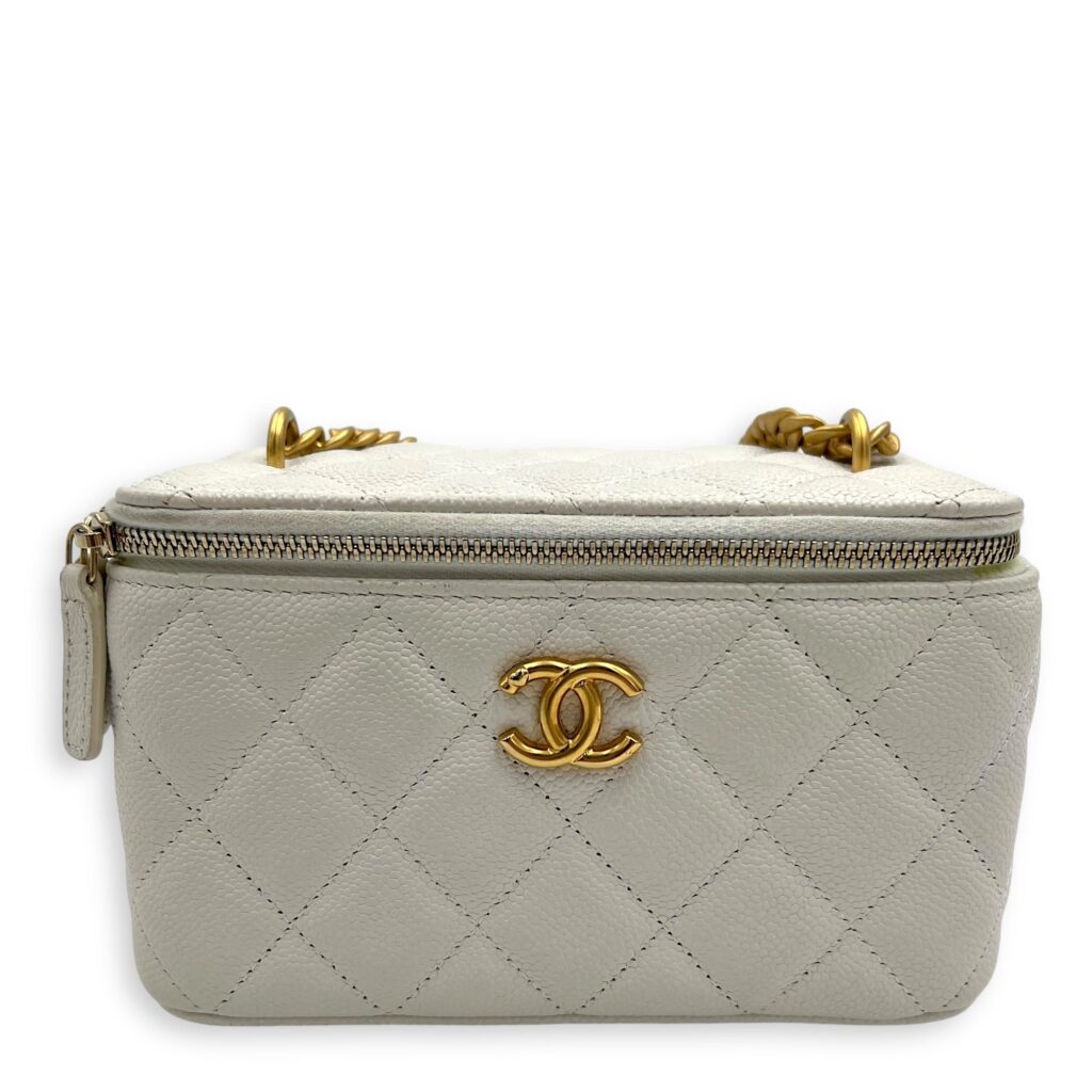Pearl Crush White Vanity Bag in Caviar Leather, Gold hardware