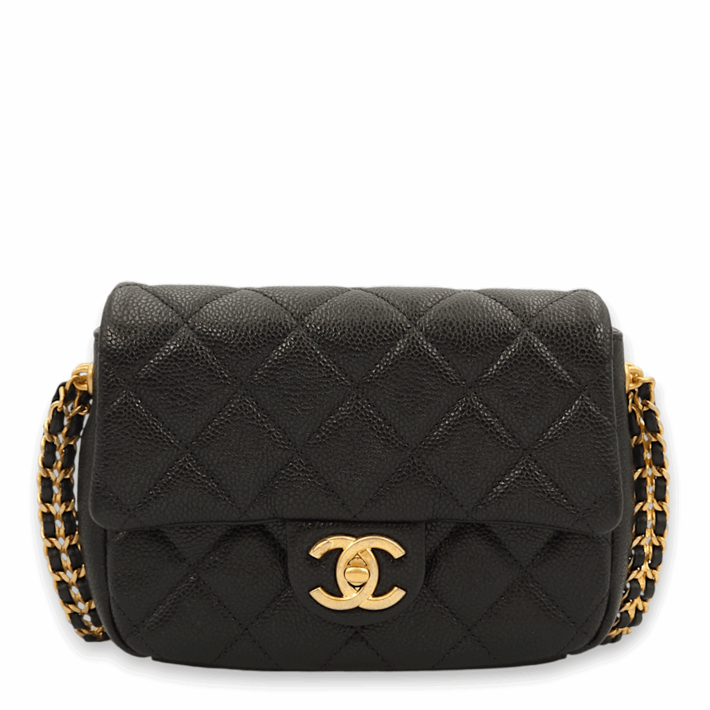 Quilted Seasonal Flap with Coco Medallion Charm Black Crossbody Bag in Caviar Leather, Gold hardware