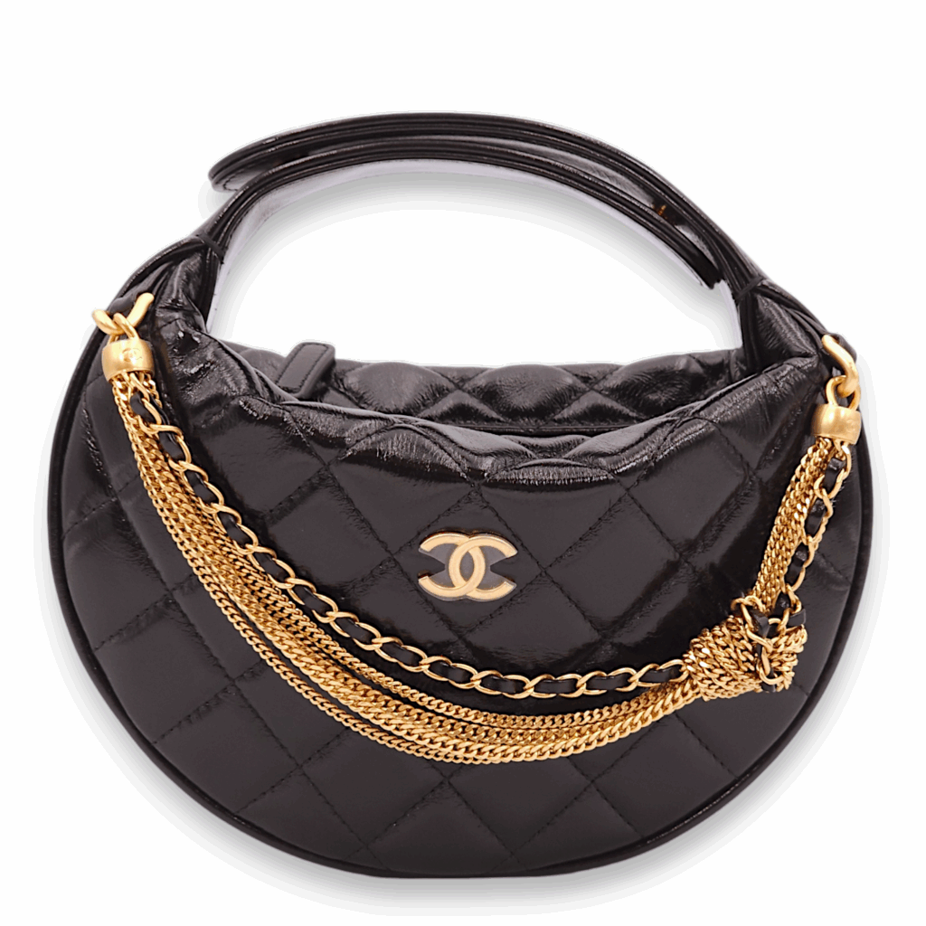 Quilted Round Mini Black Top Handle Bag in Calfskin, Gold hardware