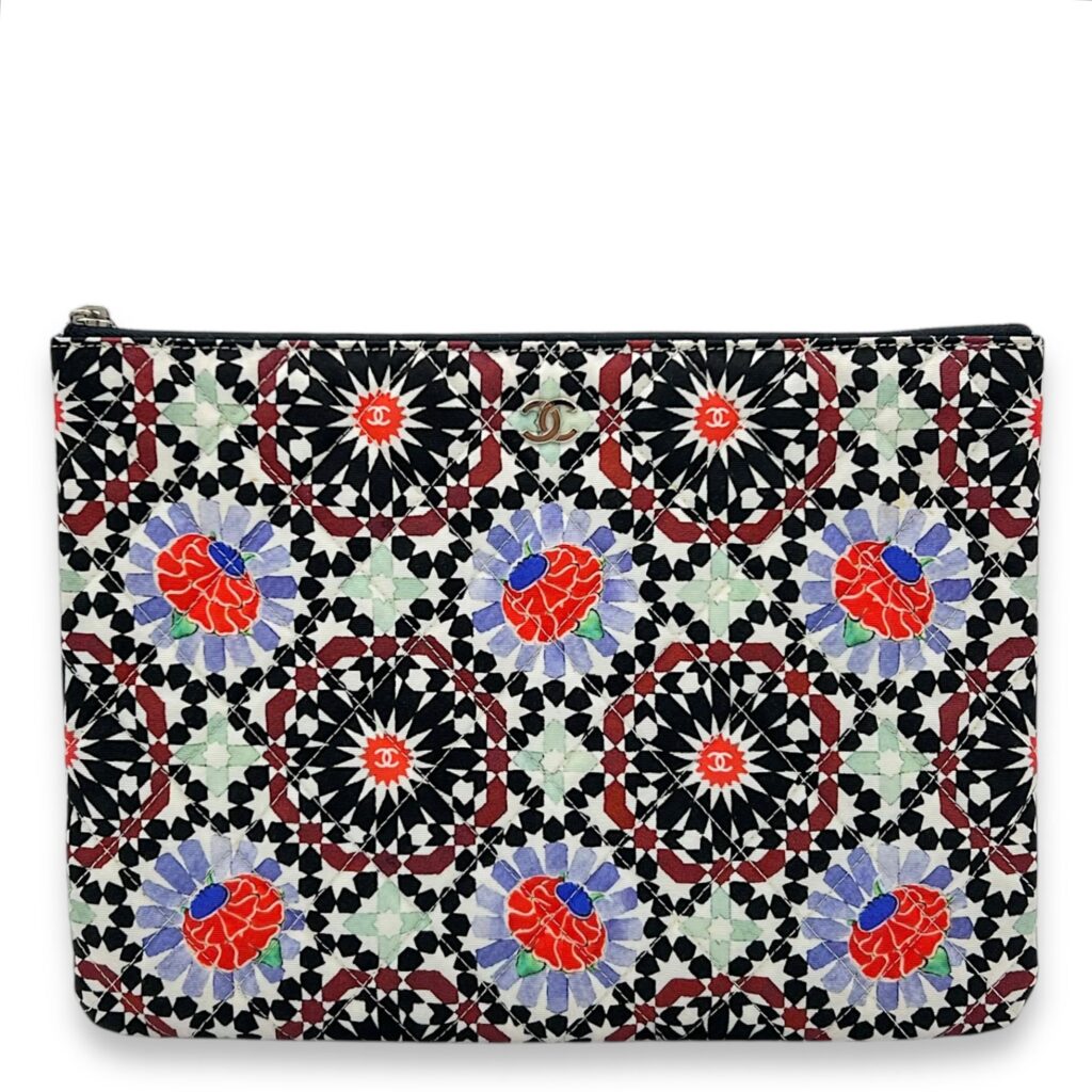 Quilted Printed Dubai Paris O Case Black Pouch in Fabric, Silver hardware