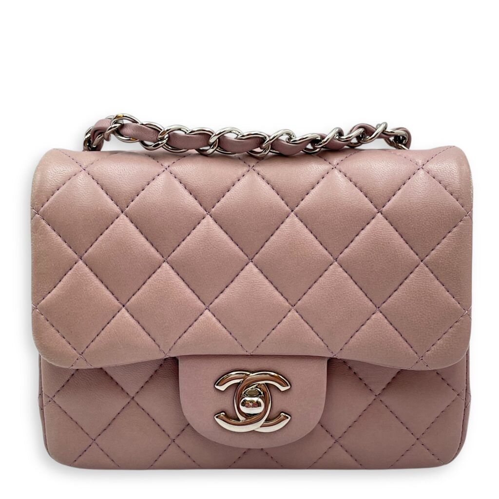 Square Mini Pink Flap Bag in Calfskin, Silver hardware