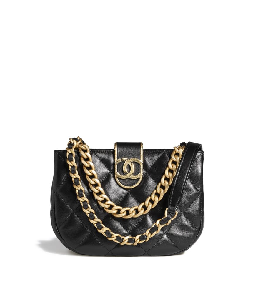Small Hobo Bag Lambskin & Gold-Tone Metal Black – CB019