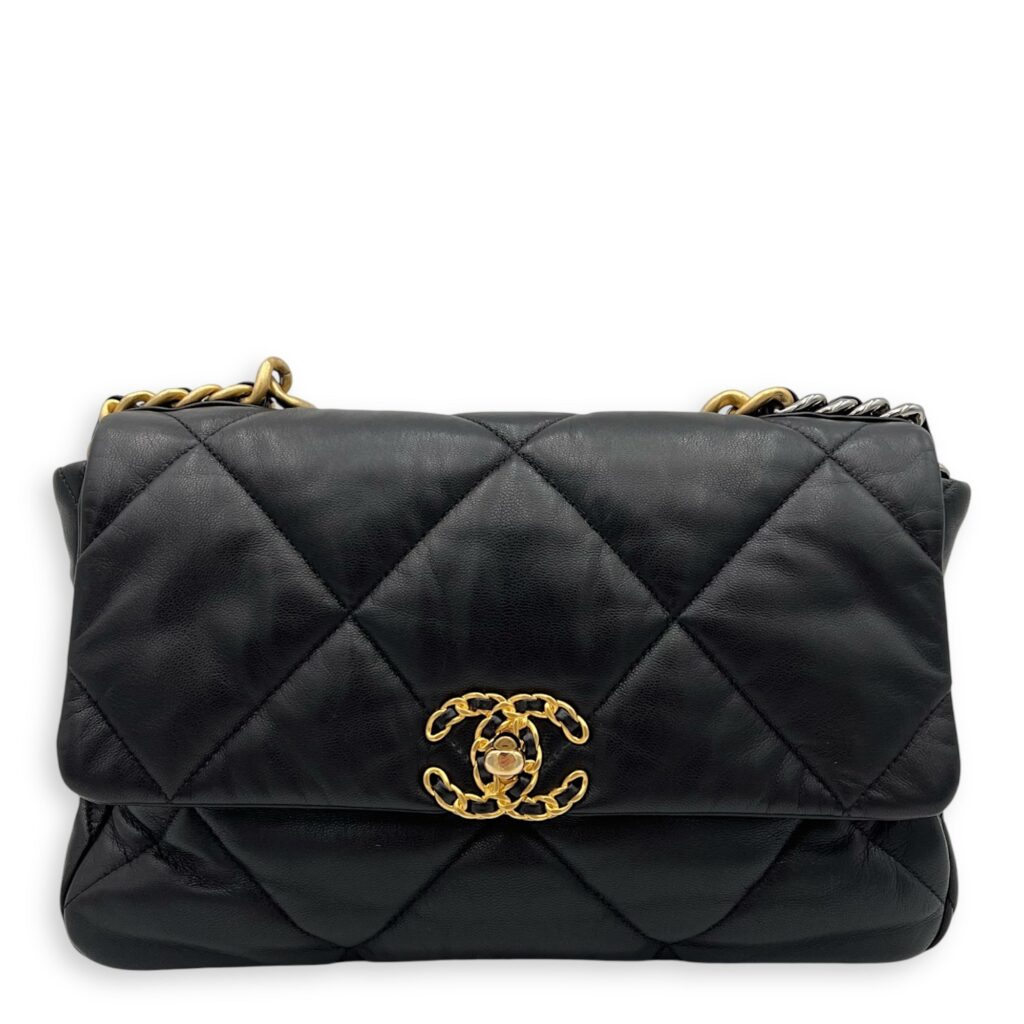 C19 Large Black Shoulder Bag in Lambskin, Mixed hardware