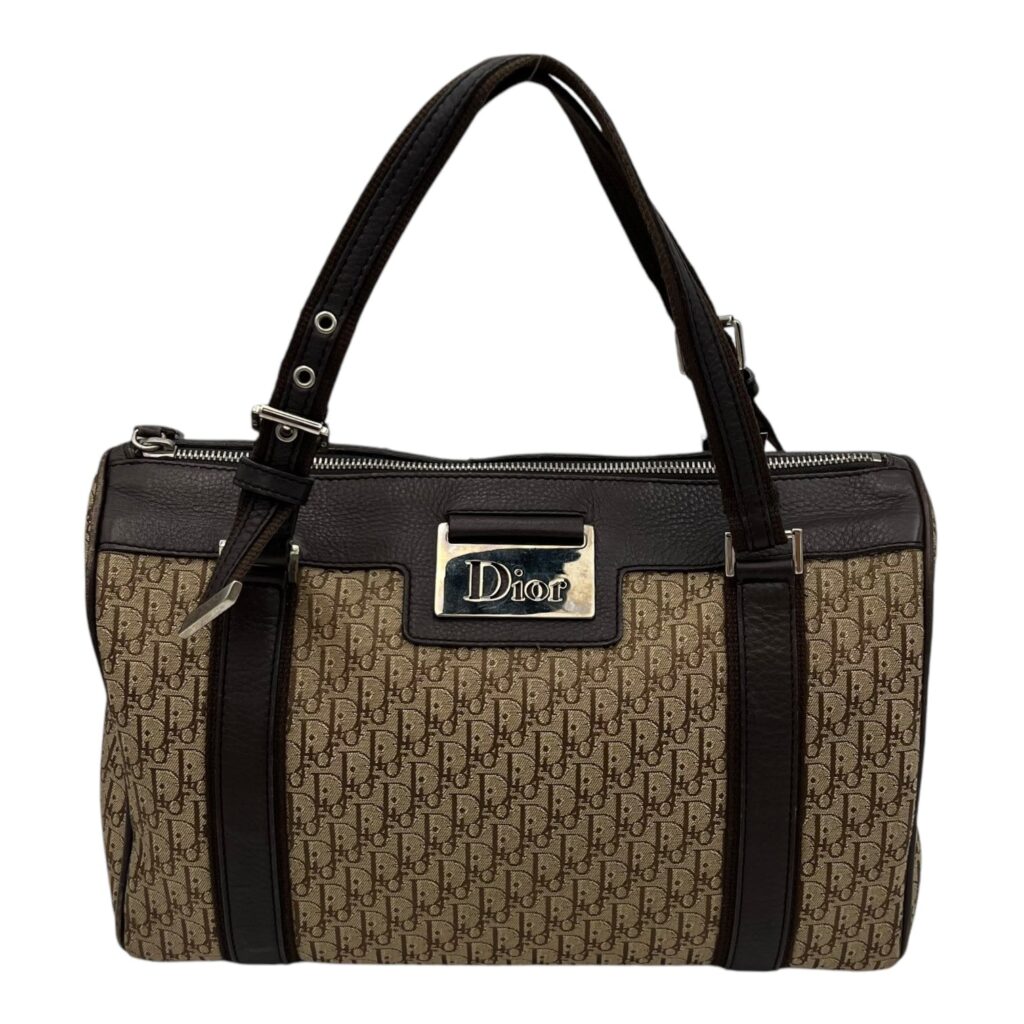 Street Chic Trotter Boston Brown Top Handle Bag in Jacquard, Silver hardware