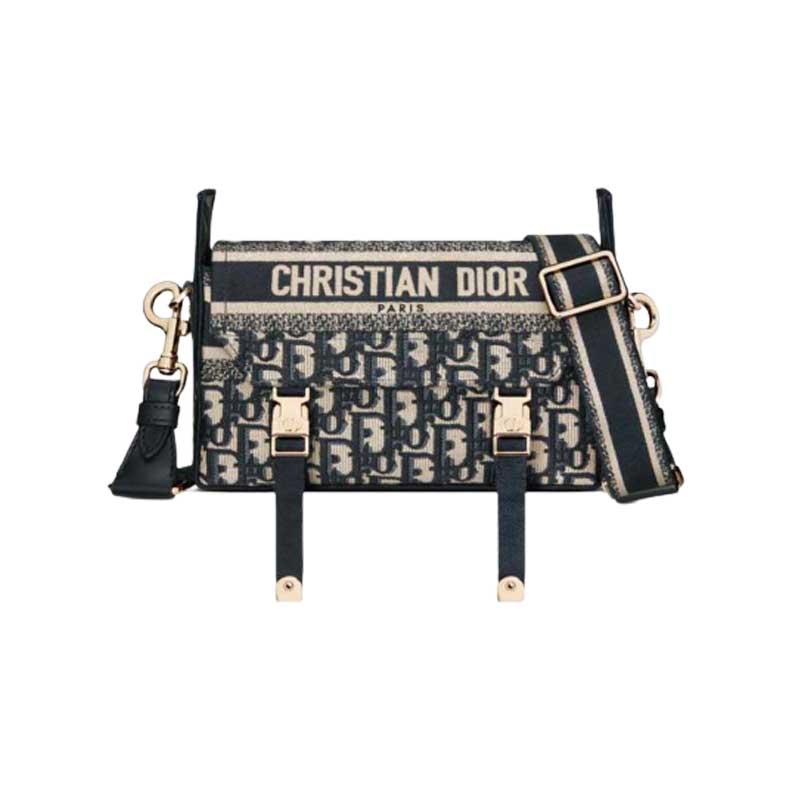 Small DiorCamp Bag Blue Dior Oblique Embroidery – DB008