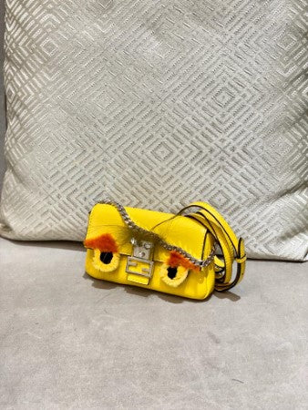 Fendi Yellow Fur Micro Monster Baguette Bag