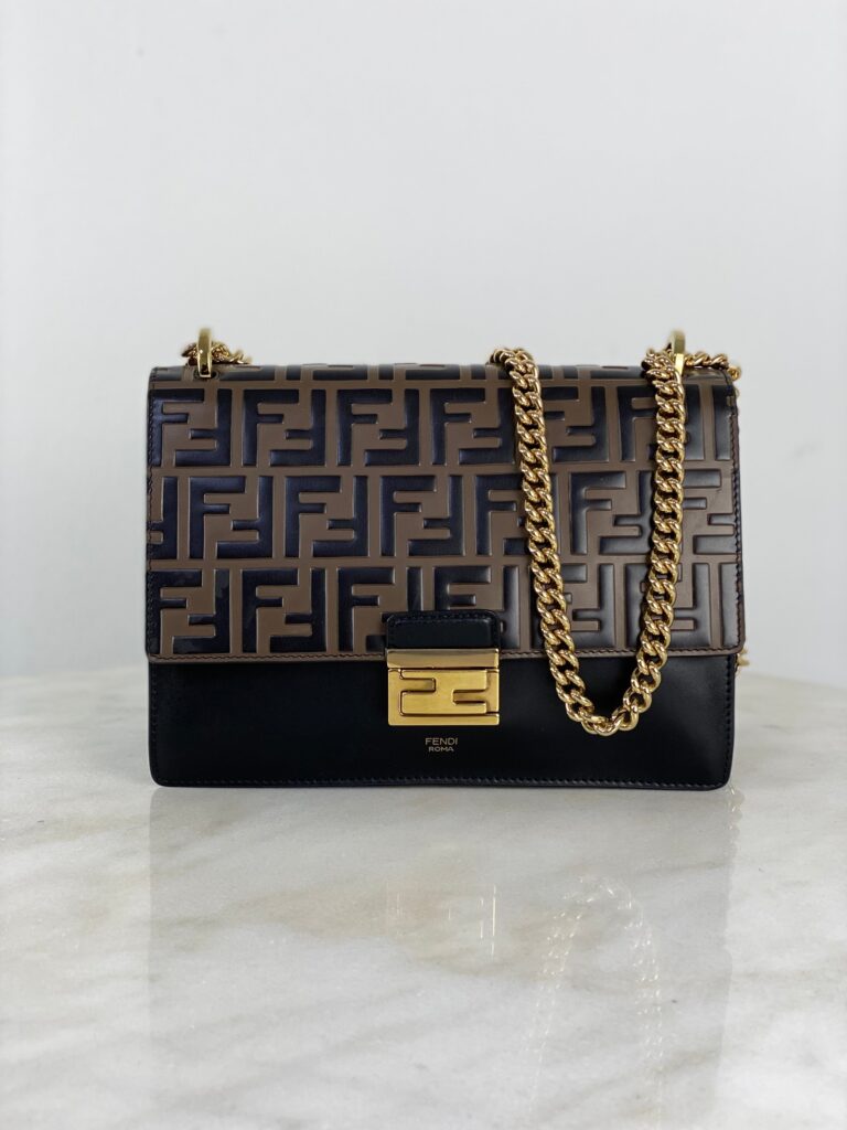 Fendi Bicolor Vitello Liberty FF 1974 Kan U Bag W/ Strap & Chain