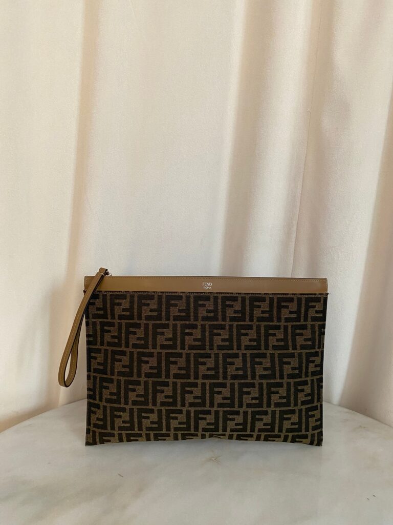 Fendi Brown Baguette FF Flat Shoulder Bag