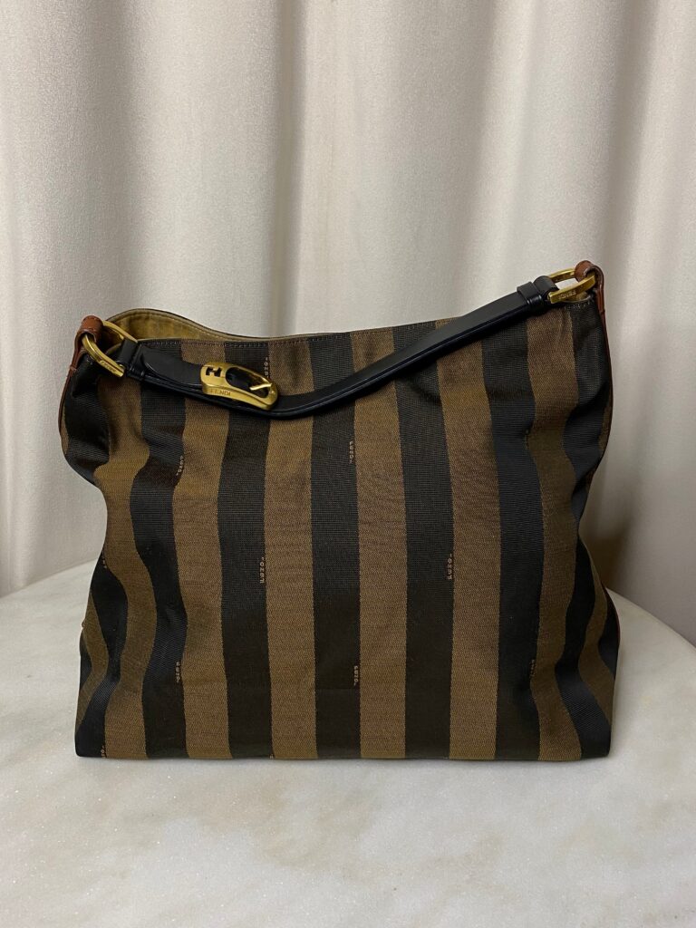 Fendi Brown Terrycloth Embossed XL Sunshine Tote Bag